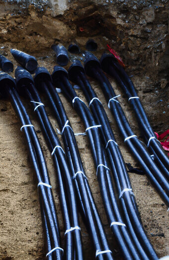 We connect properties to the electricity network using underground service cables from the nearest pillar or pit, including all trenching, conduit installation, and proper terminations.